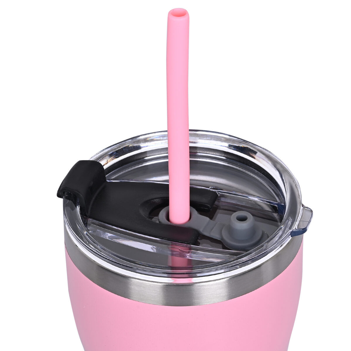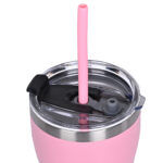 HomeTumbler Sets Double Wall Insulated Stainless Steel Kids Sipper Tumbler 300 ML with Silicon Straw (Pink)