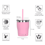 • Double Wall Insulated Stainless Steel Kids Sipper Tumbler 300 ML with Silicon Straw (Pink)