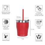 Double Wall Insulated Stainless Steel Kids Sipper Tumbler 300 ML with Silicon Straw (Red)