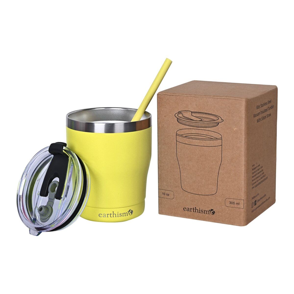SKU: Earth_Kids_ST300_Yellow Categories: All Products, Kids Range, Tumbler Sets Tags: Double Wall Insulated Stainless Steel Kids Sipper Tumbler with Silicon Straw, Sipper Tumbler with Silicon Straw, Stainless Steel Kids Sipper Tumbler