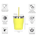 • Double Wall Insulated Stainless Steel Kids Sipper Tumbler 300 ML with Silicon Straw (Yellow)
