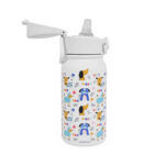 Earthism Double Wall Insulated Stainless Steel Kids Silicone Spout Sipper Water Bottle for School and Travel 350 mL (Pups, White)