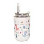 • Earthism Double Wall Insulated Stainless Steel Kids Sipper Tumbler 300 Ml (Dino, White)