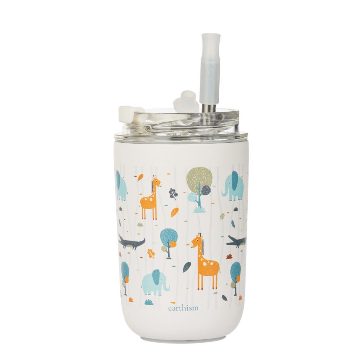 Earthism colorful kids tumblers are made of 18/8 food-grade stainless steel and have double-walled vacuum insulation; which means that your beverage will stay hot or cold for a long time. The size of the cup is very suitable for tiny hands. They come in a variety of vibrant prints & colors; and with safe reusable retractable stainless steel straw with silicone tip. Go-on, choose your favourite one!