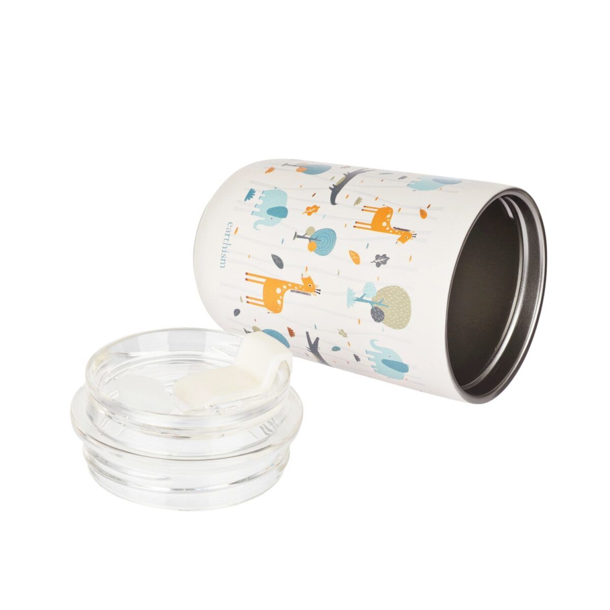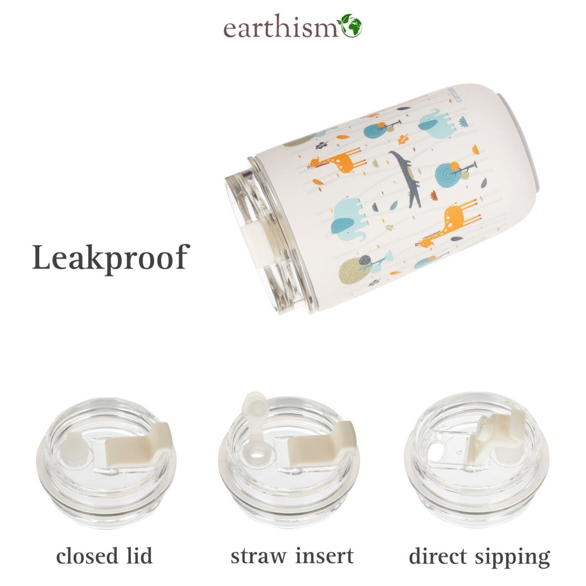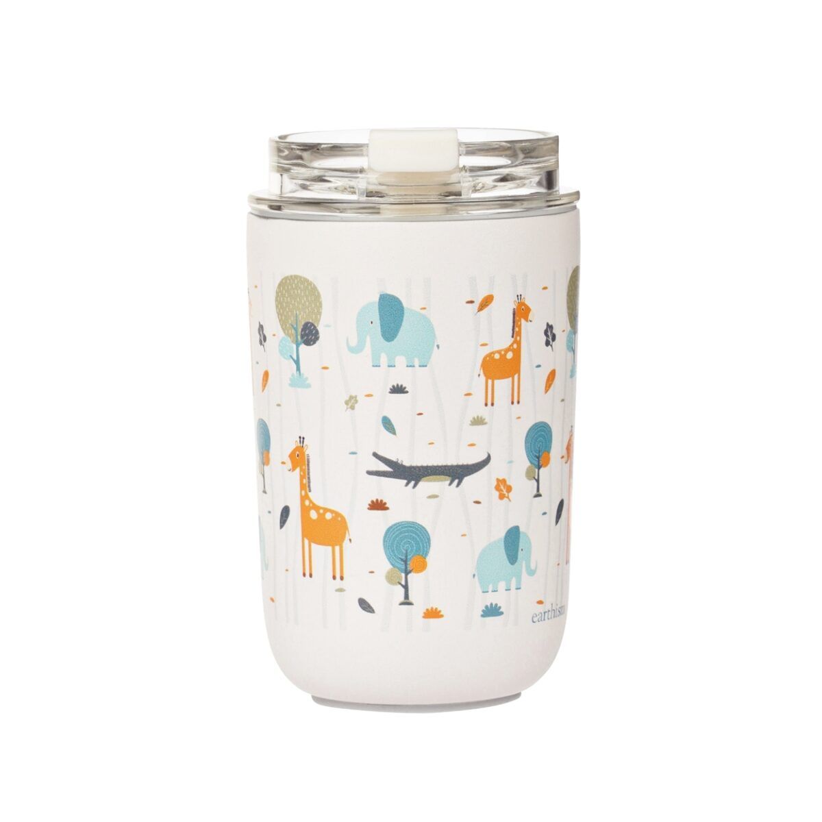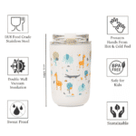 Earthism Double Wall Insulated Stainless Steel Kids Sipper Tumbler 300 Ml (Jungle, White)