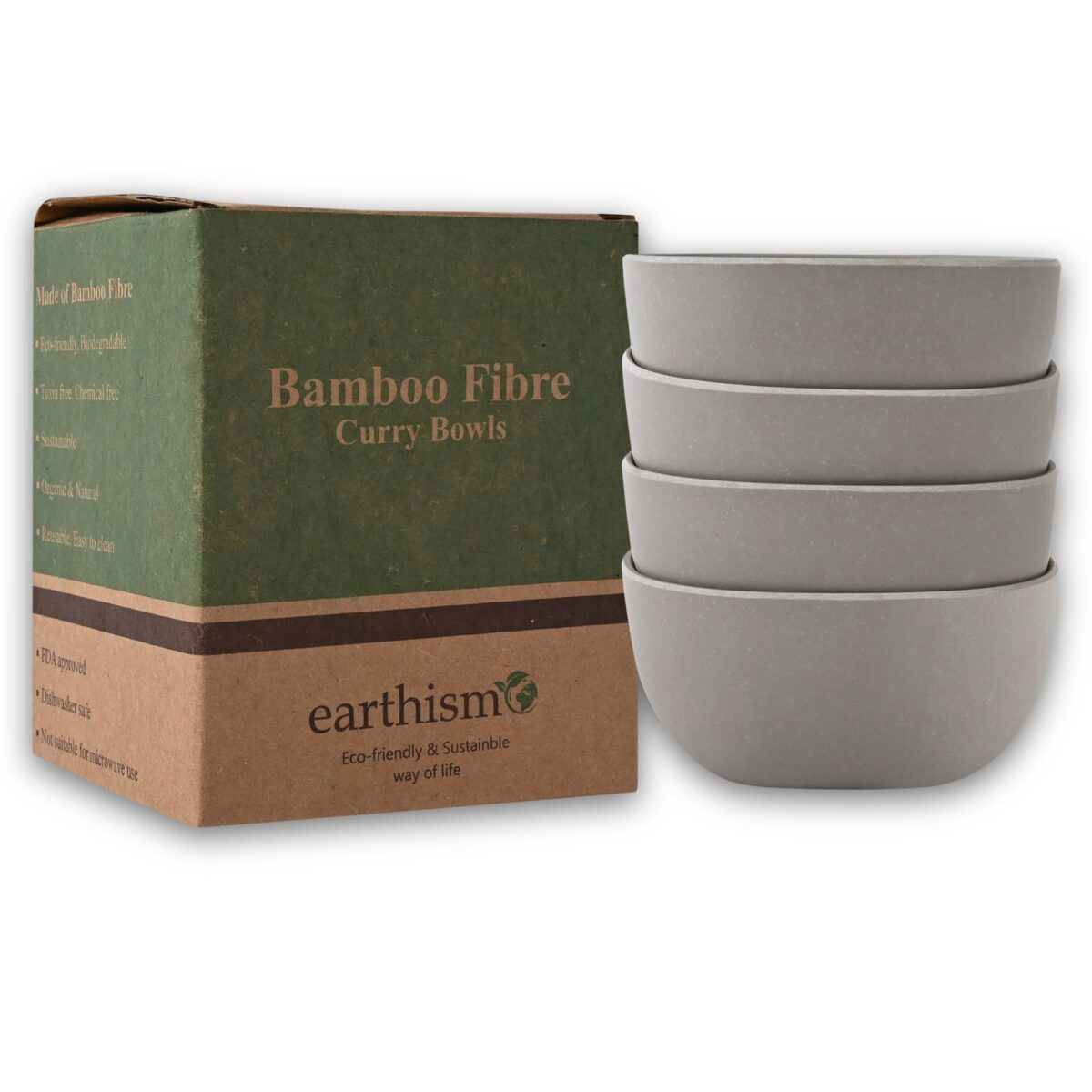Earthism Curry Bowl Set includes 4 bowls – 9 x 5 cm each. The size of the bowls is apt for serving curries/ desserts. It is Made of Organic Natural Bamboo Fibre and 100% Safe for everyday use. It comes in great attractive designs. Packed in an ecofriendly box, it?s a great gifting option as well
