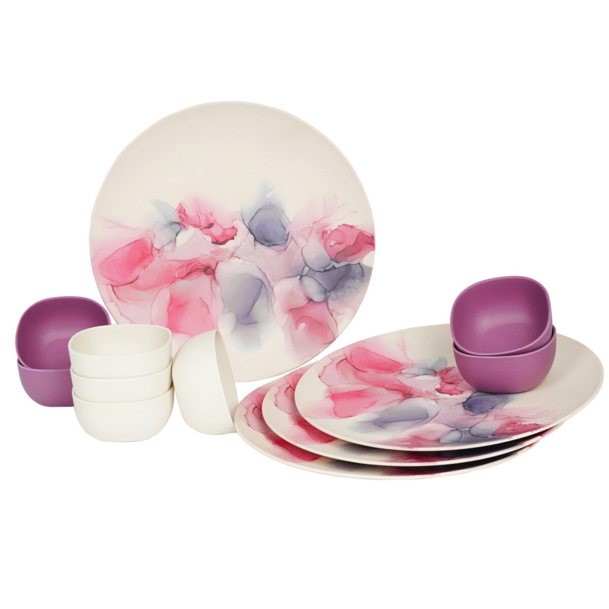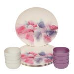HomeDinnerware Eco-Friendly Bamboo Fibre Dinner Plates 11″ and Bowls 4″- Pack of 12(Iris, Beige & Berry )