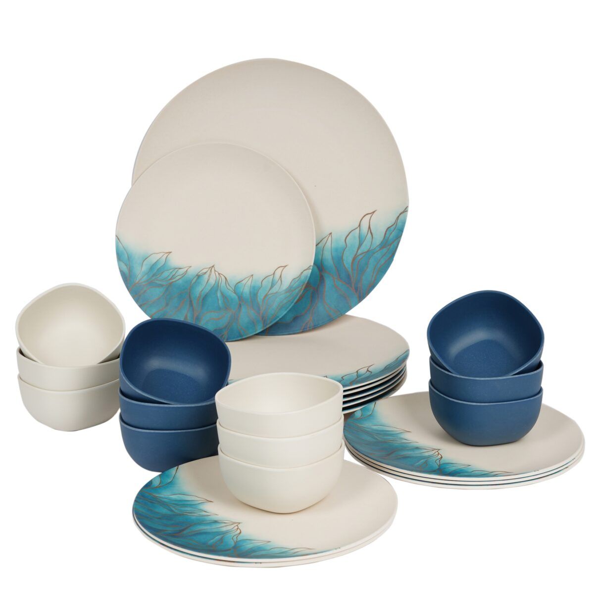 HomeDinnerware Eco-Friendly Bamboo Fibre Dinnerware Set – Pack of 24 (Azure, Beige & Blue)