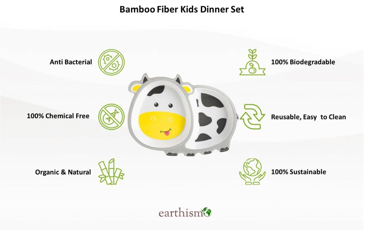 SKU: Earth_KidSet_Cow Categories: All Products, Dinnerware, Kids Range Tags: Bamboo Fibre Kids 5 Pc Dinner Set, Eco-Friendly Bamboo Fibre Kids 5 Pc Dinner Set