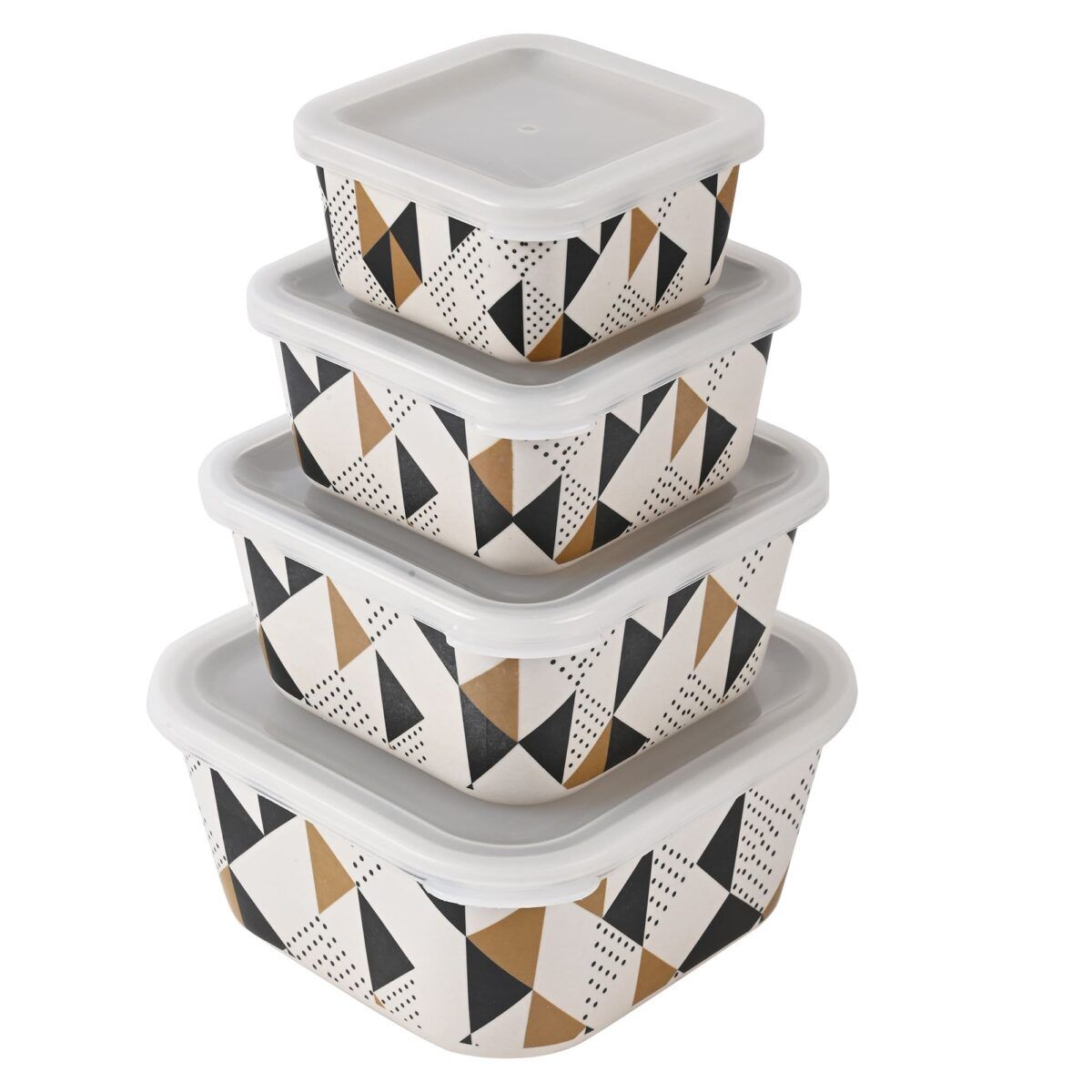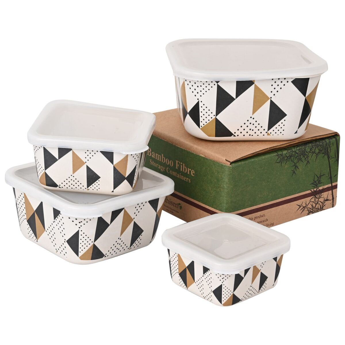 • Eco-Friendly Bamboo Fibre Storage Containers – Set of 4 (Triad, Beige Black )
